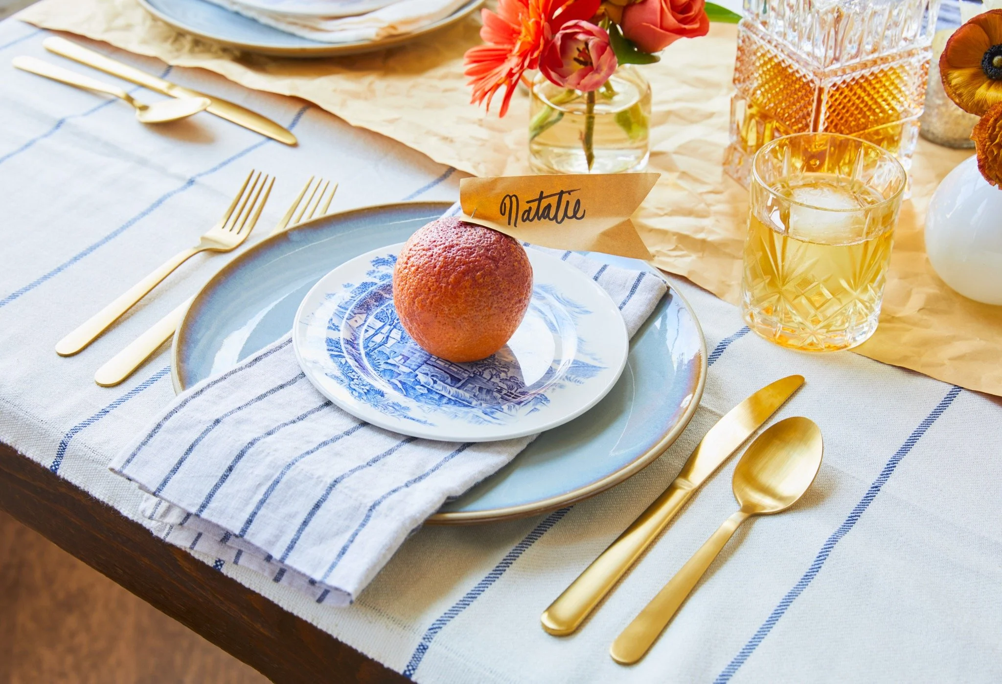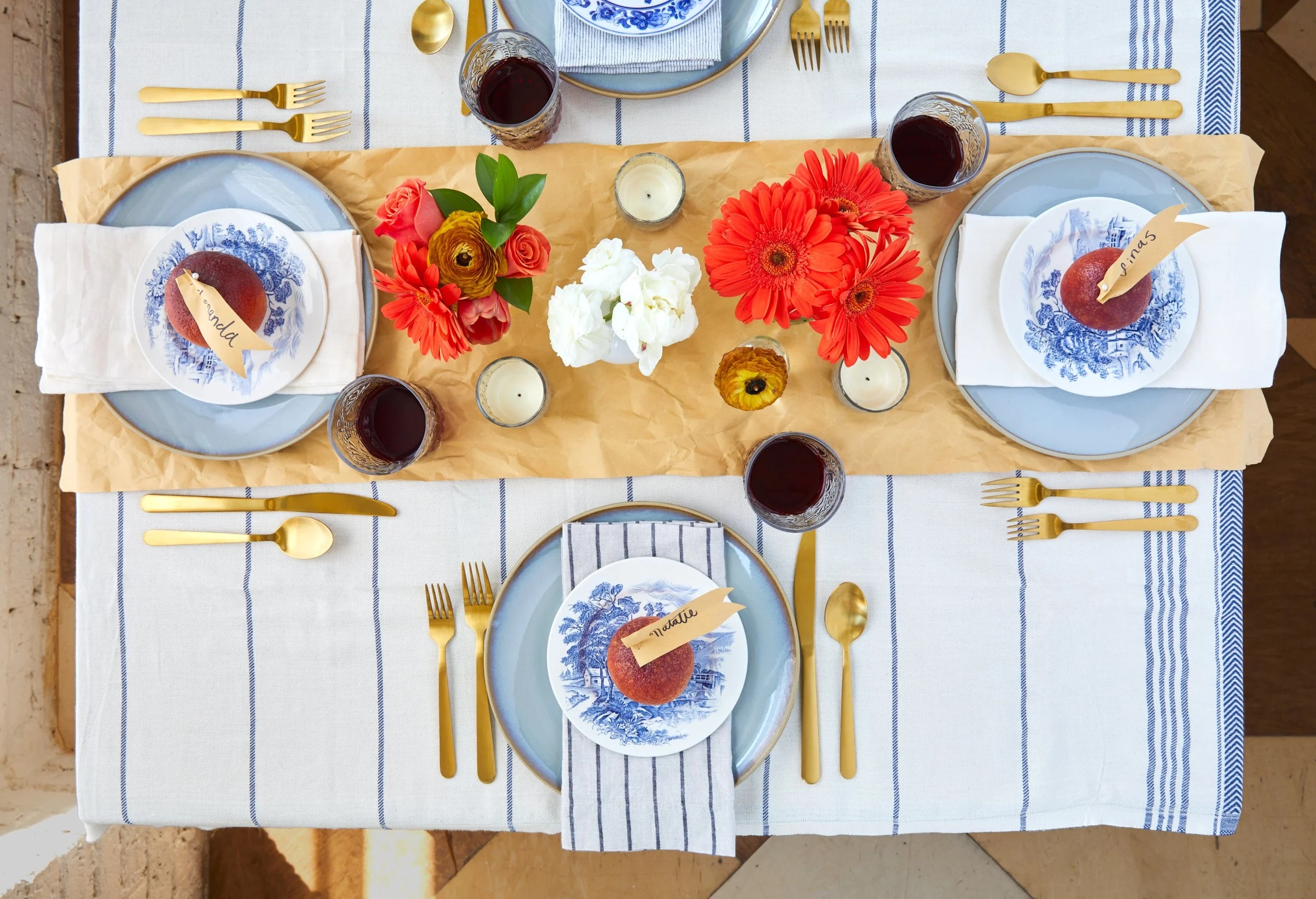 Wrapping paper as placemats: unexpected, playful, and instantly styled